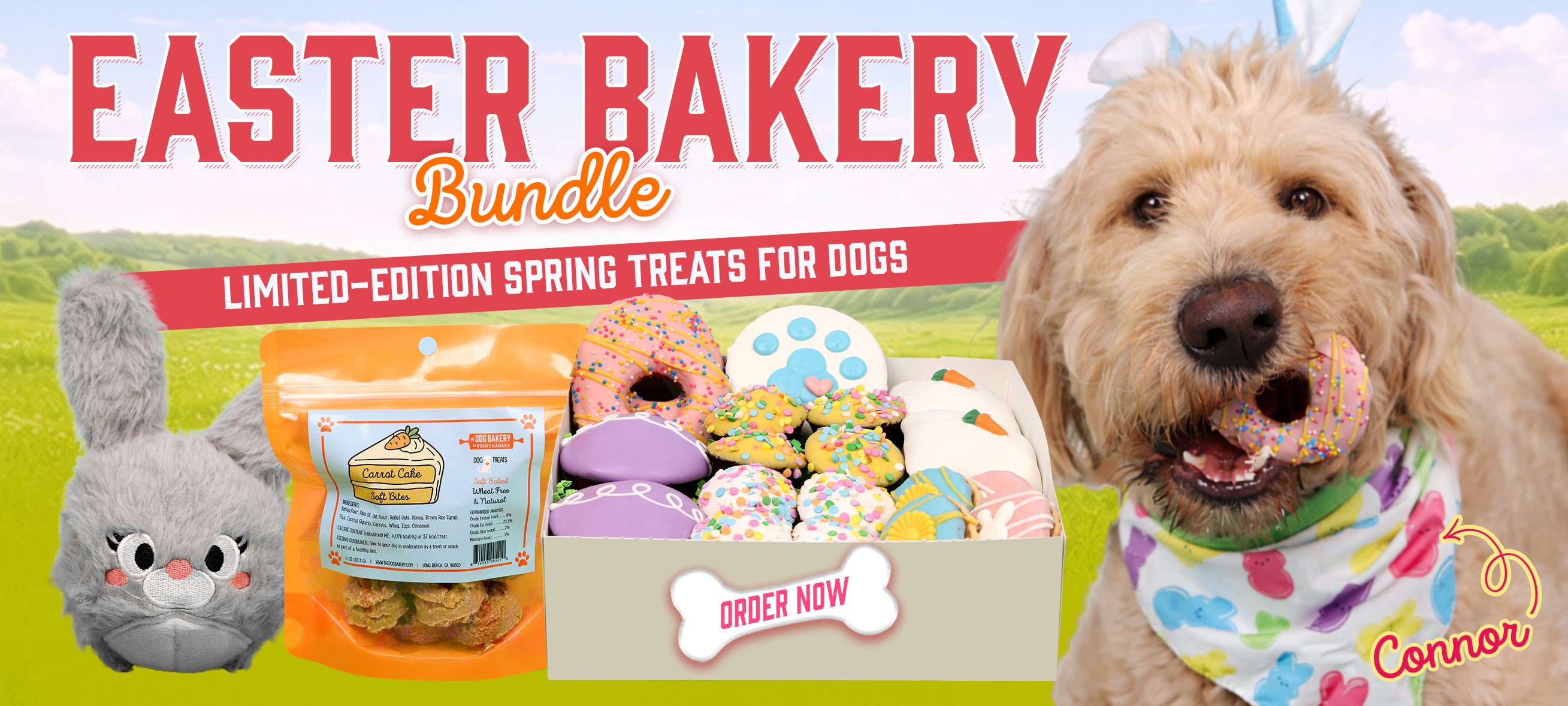 Soft, bakery-style carrot cake treats topped with a smooth yogurt coating and a tiny carrot decoration. These spring-inspired bites bring the classic carrot cake flavor dogs love in a soft, easy-to-enjoy treat.