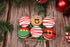 6 Creme-Filled Sandwich Cookies: Carob and vanilla–flavored cookies filled with creamy goodness and decorated in merry holiday styles — from gingerbread faces and Santa suits to playful elf outfits and red-and-white striped designs.